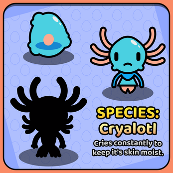 Oh my goodness, this is so freaking cute!!!!! Cryalotl is incredible and it's 100% fitting that their nature is ✨SASSY!✨ I would 100% play this game!